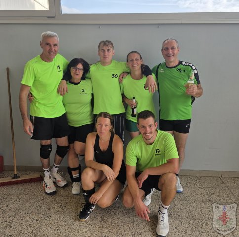 60 Jahre Volleyball des TL Hüttersdorf waren Anlass genug, neben einem Jedermann-Turnier ein BFS-Turnier auszurichten. Die Sommerferien waren zwar schon vorbei und trotzdem hatten wir Probleme, unsere Mannschaft vollzählig zu bekommen. Insbesondere vor dem Hintergrund, dass wir als LK1-Mannschaft gegen Adrenalin mit 3 Frauen spielen mussten. Ein dickes Dankeschön an Tina, die extra ihre Schicht noch verlegt hatte. Da wir mit beiden Gruppen auf nur einem Feld spielten, war unser erstes Spiel erst nach 12 Uhr angesetzt. Aber, oh Schreck: bislang zählten wir lediglich 5 Spieler. Bis Manuel - nach Verletzungspause auch wieder dabei und - vor Ort war, starteten wir trotz Zuwartens der Dieffler Hüpfer mit Alex, der eigentlich nur zum Anfeuern in die Primshalle nach Schmelz gekommen war. Er sicherte uns bei seiner ersten Angriffsaktion gleich einen Punkt. Wohl nicht frei in den Köpfen ob des holprigen Starts verloren wir das Auftaktspiel mit 2:1 Sätzen. Auch gegen Adrenalin taten wir uns anfangs sehr schwer, drehten einen Rückstand zum 2-Satz-Sieg und wurden Gruppenzweiter.