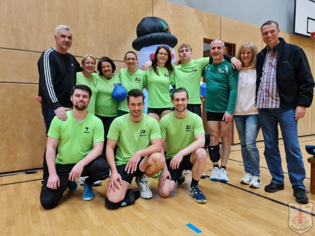 Am 02. Advent hieß es seit langem mal wieder Dabeisein beim Pokalendrundenturnier. In der Kirchberghalle tobte der Bär. Wären wir an anderen Spieltagen froh um jede Anfeuerung gewesen, war es diesmal unfassbar laut. Insbesondere dann, als unser neues Maskottchen Gerdi eine ausgeliehene Trommel spielte. Die Gruppenphase gegen Nix wie hin, Hauzu und Schluss und die Smarties schlossen wir mit ein wenig Pech (1 Satz mit nur einem Punkt Abstand zu 24 verloren) leider „nur“ als Gruppenzweiter mit 4 Punkten ab. Kleiner Trost war für uns, dass wir die vielen offenen Rechnungen gegen die Smarties mit einem Sieg nach Punkten verkürzen konnten.